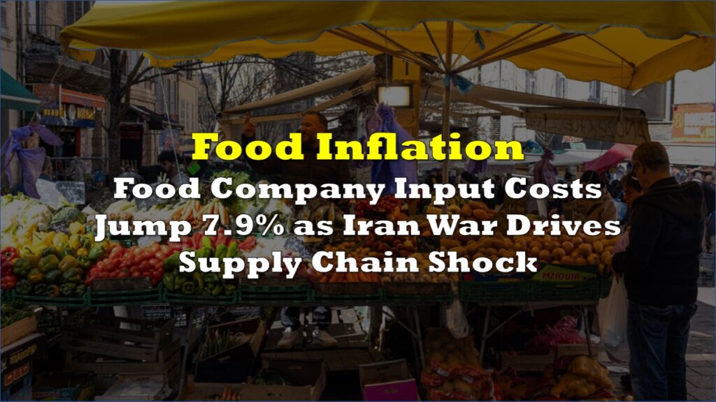Input costs for food and beverage companies surged 7.9% year-on-year in March, nearly doubling February’s...