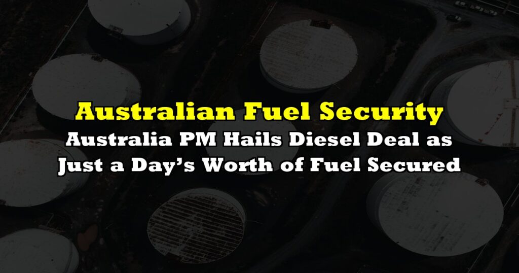 Australia has secured 100 million litres of diesel—equivalent to roughly a single day’s national consumption—as part of a broader push to shore up fuel security...