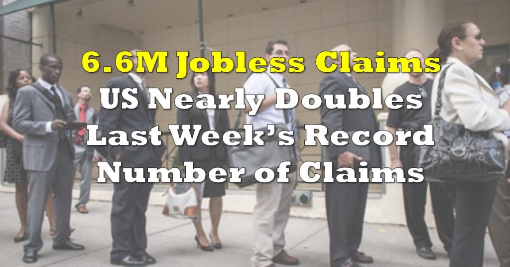 US Jobless Claims Hit 6.6 Million; Nearly Doubling Last Week’s Record Number