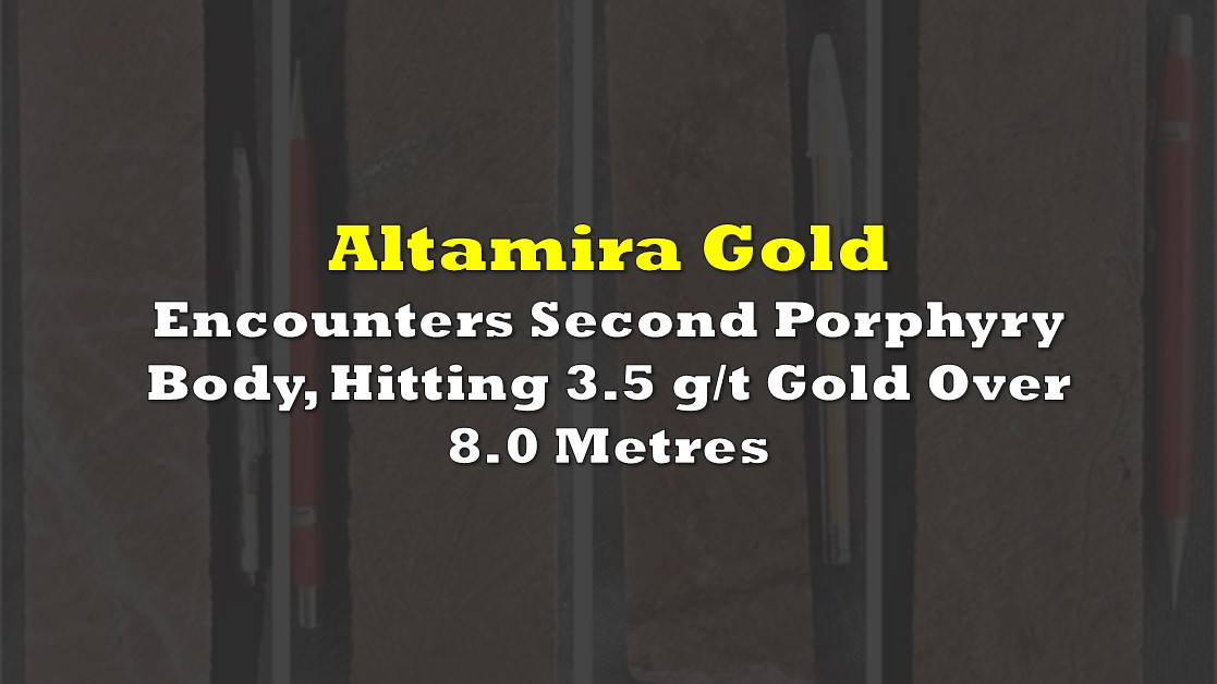 Altamira Gold (TSXV: ALTA) has encountered a second new porphyry body at their flagship Cajueiro project in Brazil. The new body of mineralization was intersected followed reconnaissance drilling that was conducted at the Morro Verde target.