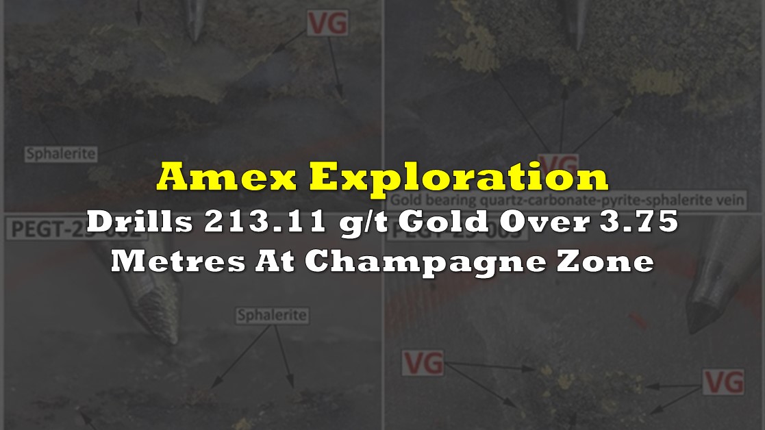 Amex Exploration (TSXV: AMX) has again encountered high grade gold mineralization while working to advance a phase one feasibility study at their Perron Project. A geomechanical drill program conducted at the Champagne Zone has unexpectedly resulted in the highest grade assay ever received on the property.