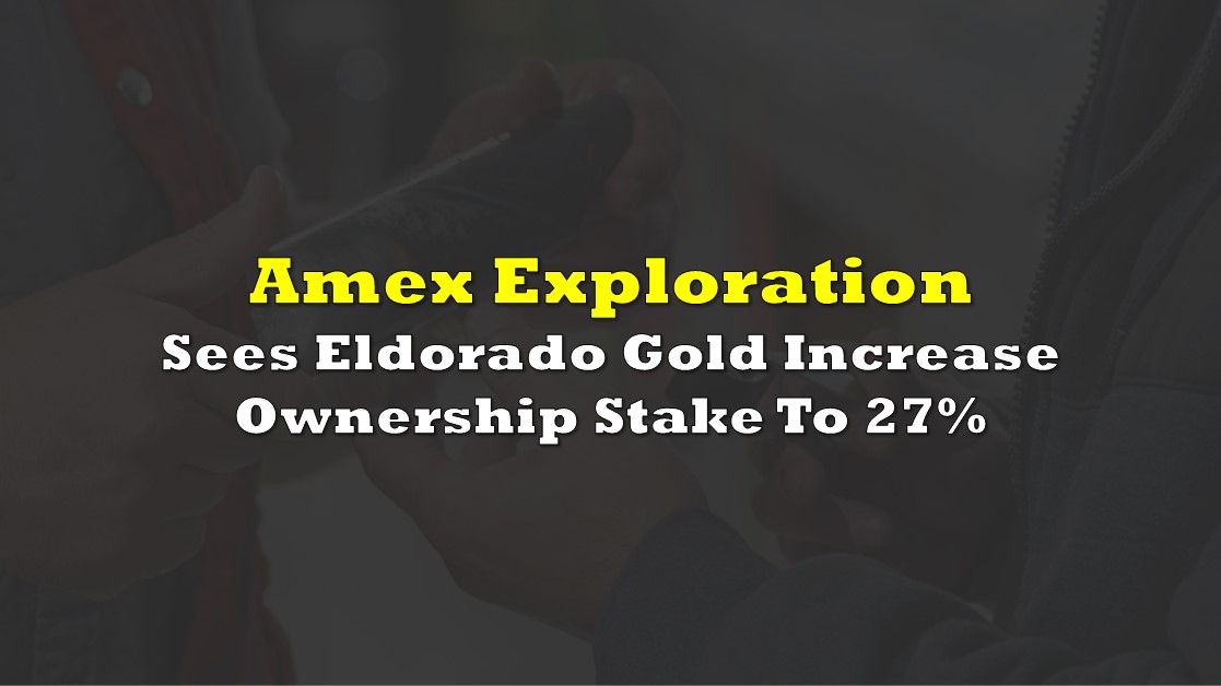 Amex Exploration (TSXV: AMX) has seen one of its largest shareholders substantially increase their ownership interest. Eldorado Gold (TSX: ELD) has purchased additional shares in the company, which were acquired via a private agreement with a third party.