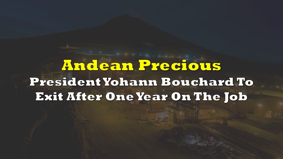 Andean Precious Metals (TSX: APM) announced Friday that its president, Yohann Bouchard, will step down from his executive role and the board of directors effective March 31. The departure comes just over a year after his appointment to the post.