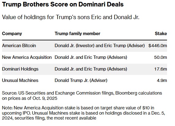 Earlier in October, Dominari’s financial advisory business also secured approval to act as a lead or principal underwriter for NYSE IPOs, after securing a similar approval from Nasdaq in August. Reuters also reported Dominari’s revenue grew more than five times in the three months ended June 30, described as the first full quarter since the Trump sons joined Dominari’s board in February.