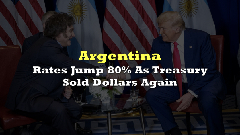 Argentina’s money-market rates jumped over 80%, as a cash crunch forced the Treasury to sell $1.3 billion of dollars in the past week to steady the peso, leaving roughly $1 billion in its own dollar deposits and pushing the crisis toward a pivotal stretch of repayments and elections.