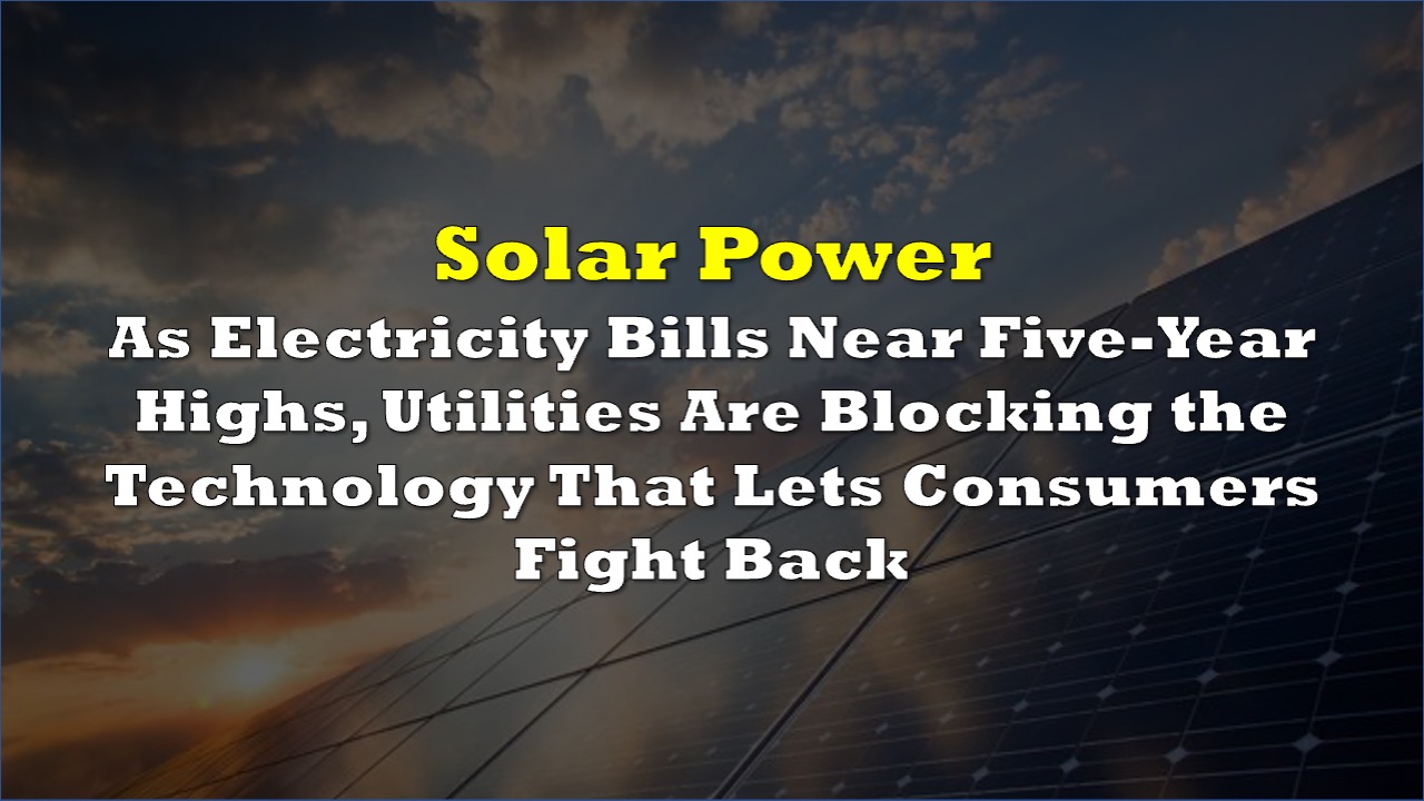 American household electricity bills are at a five-year high and rising faster than inflation. Utilities are now moving to block one of the few technologies that lets consumers generate their own power — and critics say the reason is simple: lost revenue.