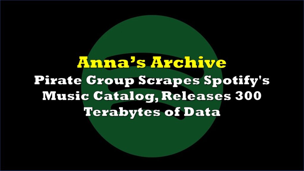 Pirate Group Scrapes Spotify’s Music Catalog, Releases 300 Terabytes of Data