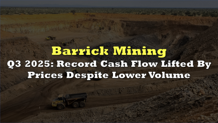 Barrick Mining (TSX: ABX) reported Q3 2025 revenue of $4.15 billion, up 23% year over year from $3.37 billion, driven by higher prices despite lower output.