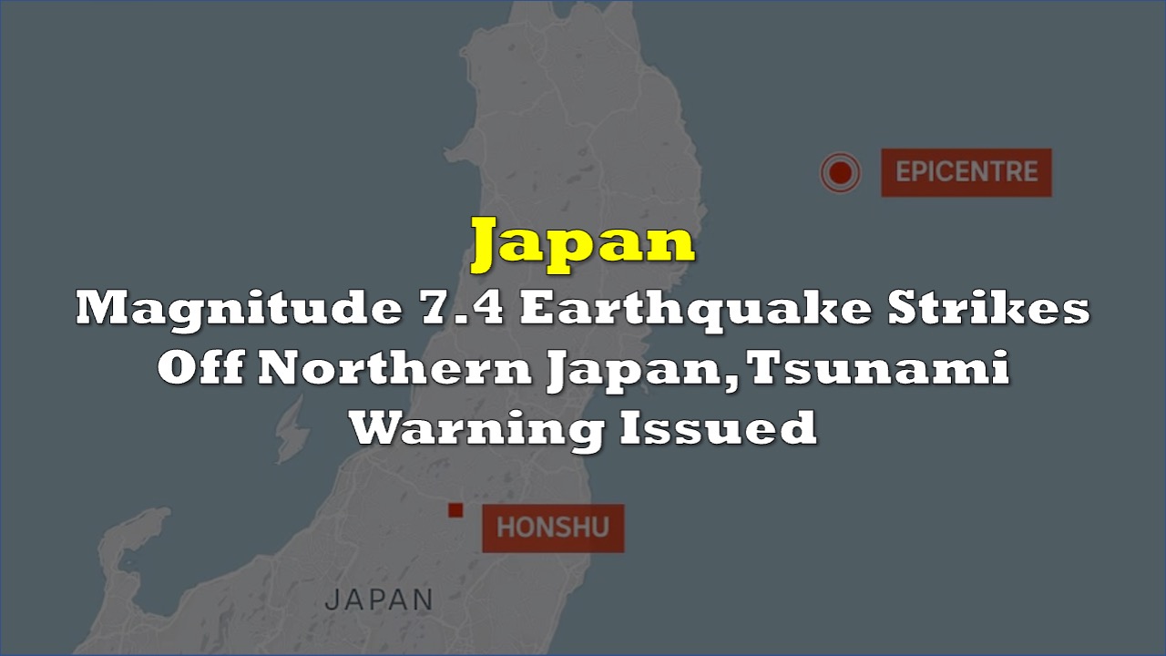 A preliminary magnitude 7.4 earthquake struck off the coast of Iwate Prefecture in northeastern Japan on Monday afternoon, prompting the Japan Meteorological Agency to issue tsunami warnings for three northern prefectures and order millions of residents to evacuate immediately.