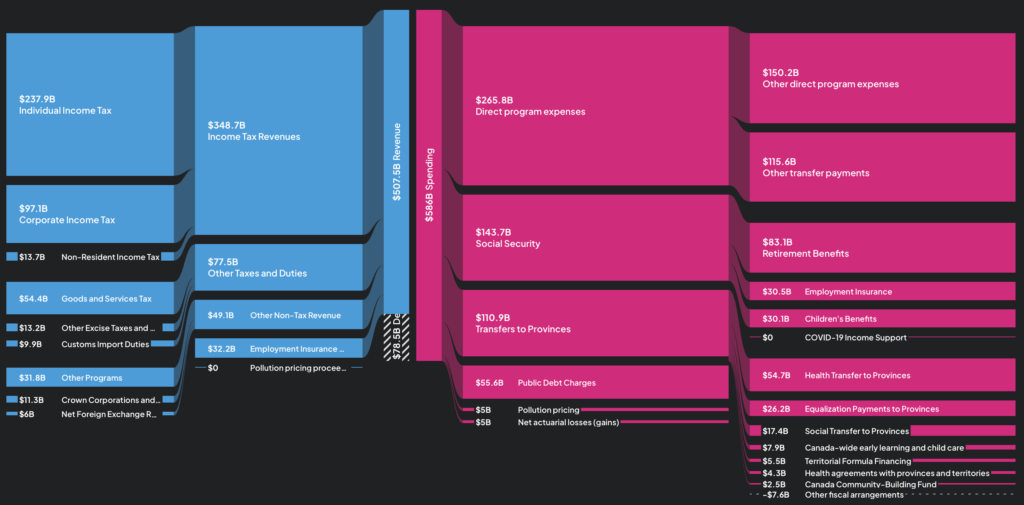 The Comprehensive Expenditure Review identifies $60 billion in savings and revenues across five years. Separate briefing material details $56 billion in program cuts, a planned reduction of about 16,000 full-time equivalent positions over the next two years including 1,000 executive roles, and an overall public service headcount that falls from a 2023–24 peak near 368,000 to roughly 330,000 by 2028–29. Most of the reduction relies on attrition and workforce adjustment.