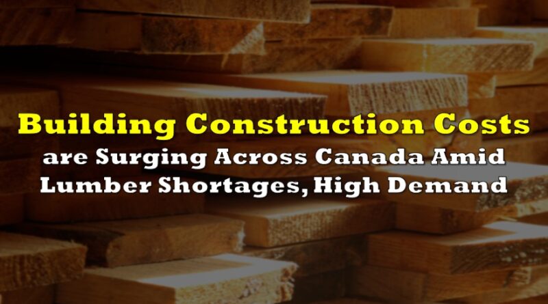 Costs for both residential and non-residential building construction across Canada rose by the most last quarter, amid low lumber supply and surging demand for housing amid the pandemic.