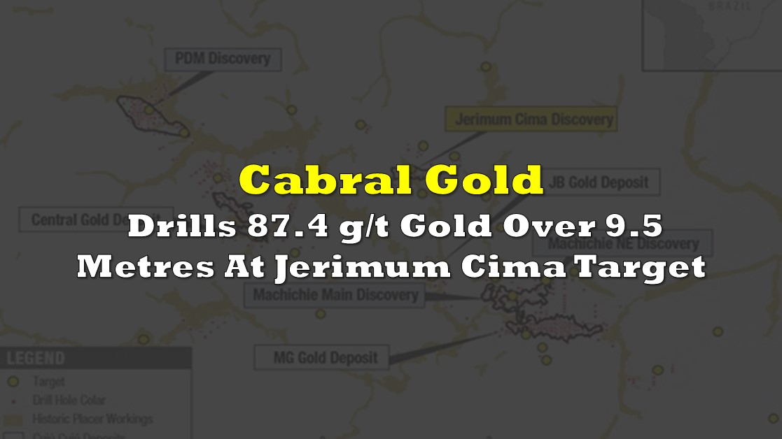 Cabral Gold (TSXV: CBR) this morning released what the company describes as its most significant drill results to date at their Jerimum Cima target, which is part of the larger Cuiú Cuiú project in Brazil.
