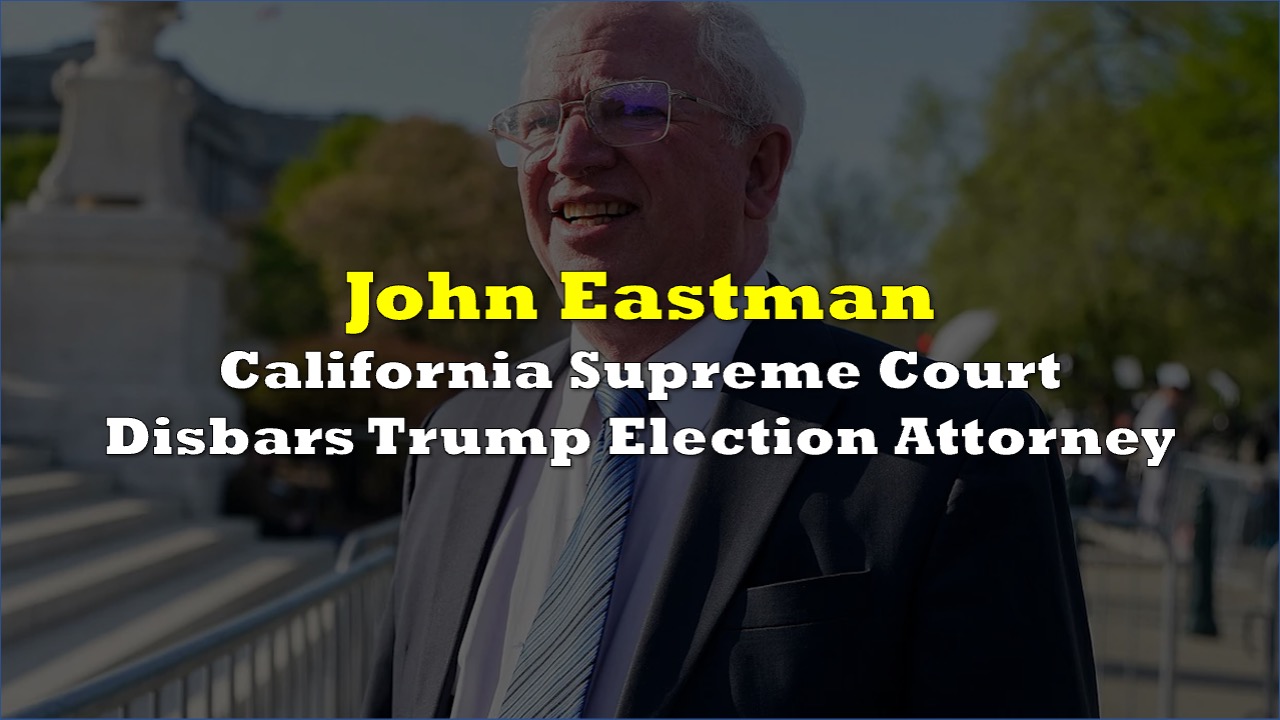 JUST IN: John Eastman, the conservative attorney who helped devise President Trump's last ditch strategy to overturn the 2020 presidential election, has officially been disbarred, per the California Supreme Court.: pic.twitter.com/FVZfKM5bBM