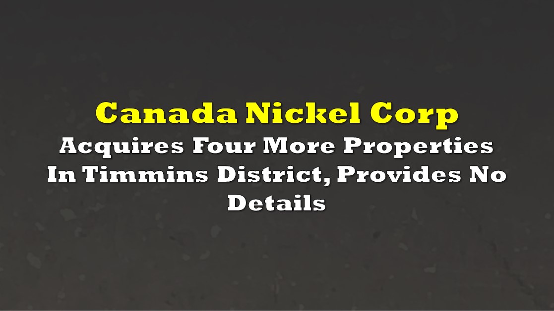 Canada Nickel Corp (TSXV: CNC) is apparently buying up more property in the Timmins district, although the firm isn’t disclosing where specifically. Notably, the firm also issued a series of corrections on prior property purchases.