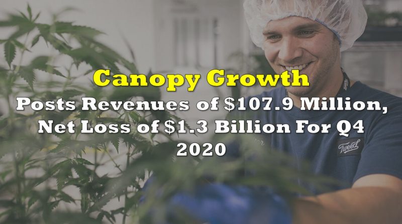 Canopy Growth Corp (TSX: WEED) (NYSE: CGC) this morning reported its fourth quarter and full fiscal year 2020 financial results this morning, posting net revenues for the quarter of $107.9 million, a decline of 13%, and a quarterly loss of $1.3 billion on the back of significant asset impairments.