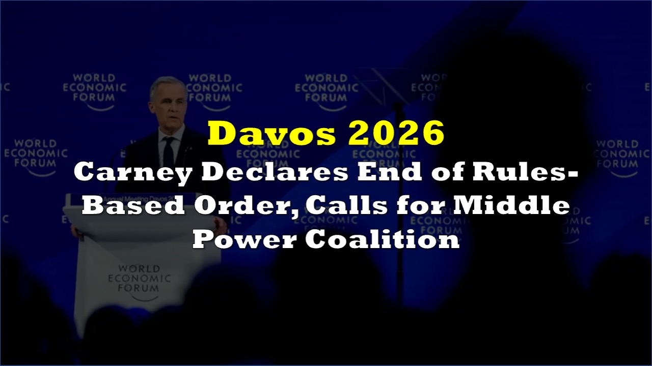 Canadian Prime Minister Mark Carney told global leaders Monday that the international rules-based order has collapsed and middle powers must unite to avoid subordination to great powers in an era of intensifying geopolitical rivalry.