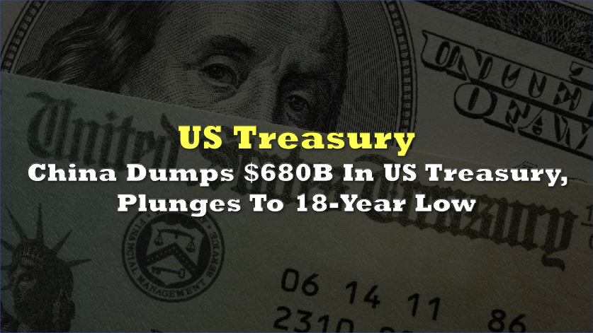 NEW data shows China’s U.S. Treasury holdings have fallen to about $680B, an 18-year low, while gold reserves have surged to record levels near 74 million ounces.
