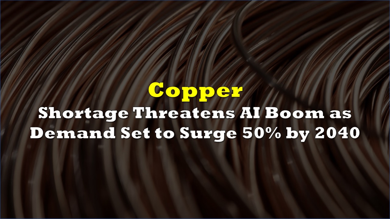 A looming copper shortage threatens to stall artificial intelligence development and clean energy expansion as global demand surges 50% by 2040, according to a S&P Global study released this month.