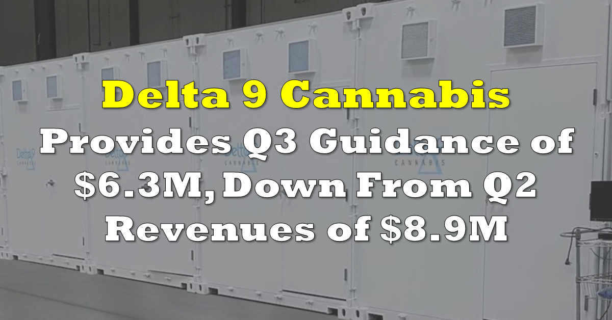 Delta 9 Cannabis (TSX: DN) provided guidance for its third quarter financials last night, indicating that the firm is expecting revenues to be between $6.3 million and $6.9 million for the three months ended September 30, 2019. Full results will be released next Wednesday after the close of markets.
