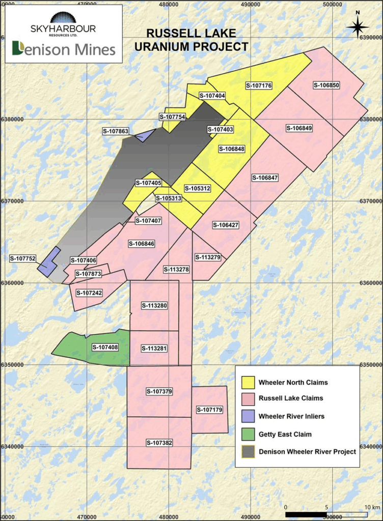 Denison Mines (TSX: DML) evidently is intensely interested in Skyharbour Resources’ (TSXV: SYH) Russell Lake Uranium project in the Athabasca Basin. The two parties have entered into an arrangement that will see the property dividend into four separate projects, with joint ventures put into place on each.