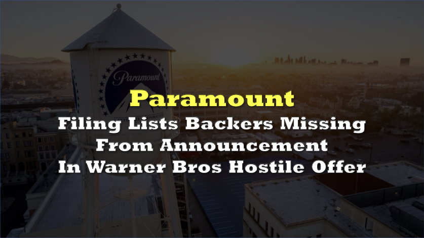 Paramount Filing Lists Backers Missing From Announcement In Warner Bros Hostile Offer