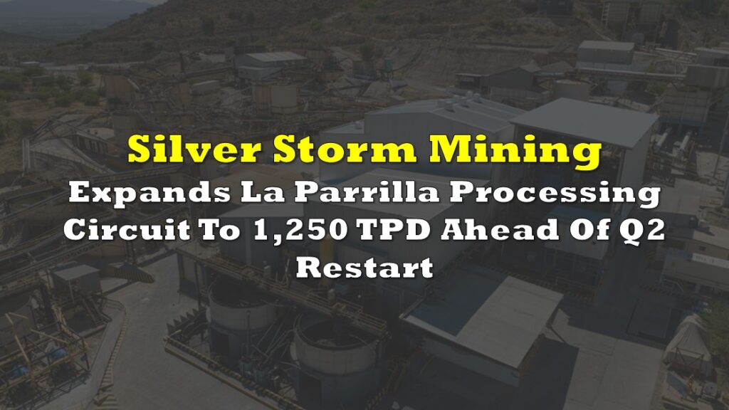 Silver Storm Expands La Parrilla Processing Circuit To 1,250 TPD Ahead Of Q2 Restart