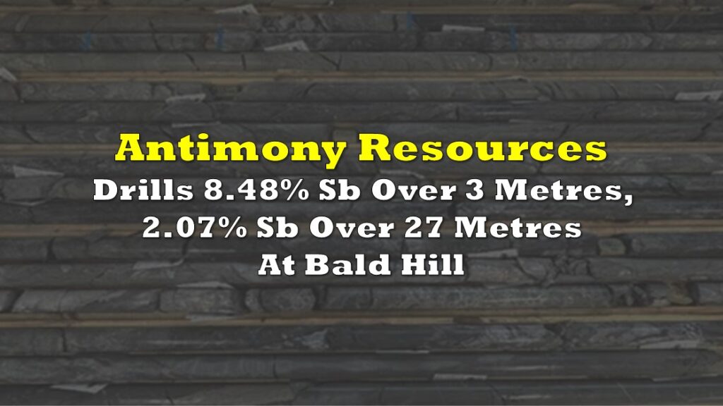 Antimony Resources Drills 8.48% Sb Over 3 Metres, 2.07% Sb Over 27 Metres At Bald Hill
