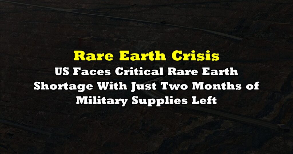 US Faces Critical Rare Earth Shortage With Just Two Months of Military Supplies Left