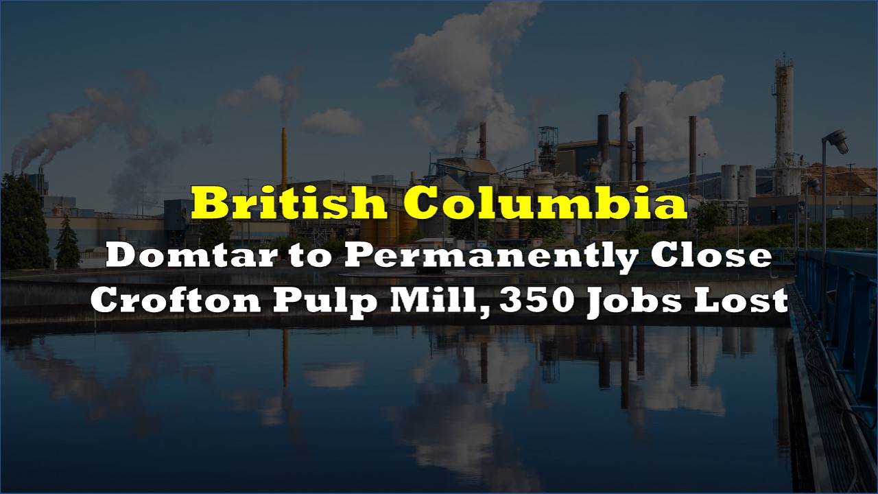 Domtar announced Tuesday it will permanently close its pulp mill in Crofton, British Columbia, eliminating approximately 350 jobs just weeks before the holiday season.