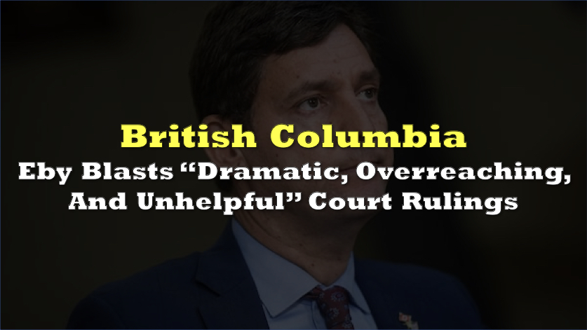 Premier David Eby escalated a public fight with the judiciary, arguing two recent decisions on Indigenous rights and title are injecting uncertainty into BC economy and threatening progress on reconciliation that has allegedly supported roughly $100 billion in resource projects.