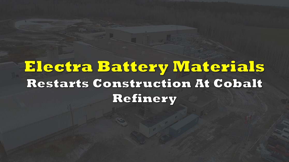 Construction has finally resumed for Electra Battery Materials (TSXV: ELBM) at their cobalt sulfate refinery. The refinery, which is the only such facility in North America, is a brownfield project which already has the required permits and infrastructure in place for operation.