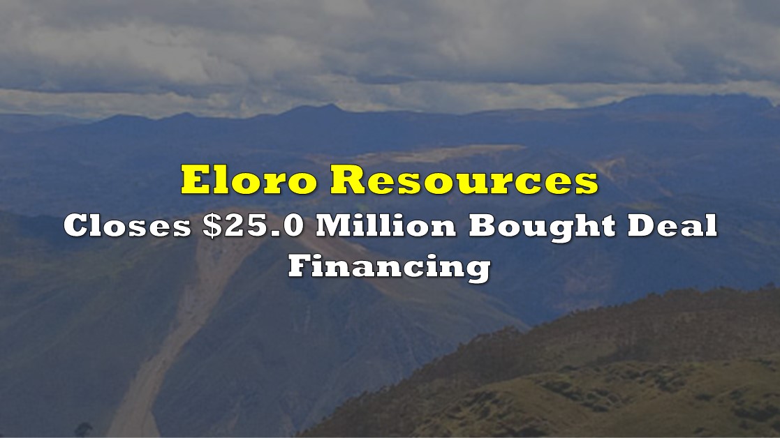 Eloro Resources (TSXV: ELO) this morning announced the closing of its bought deal private placement. The financing saw a total of $25.0 million raised in gross proceeds for the company, including the exercise of the over-allotment option.