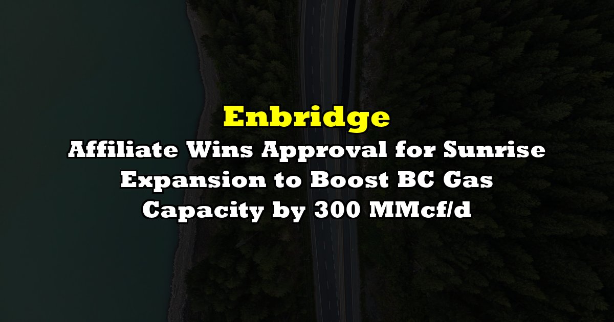 Westcoast Energy Limited Partnership, an Enbridge (TSX: ENB) affiliate, has secured a certificate from the Canada Energy Regulator to proceed with its Sunrise Expansion Program, a major upgrade to its T-South natural gas pipeline system in British Columbia. The project, designed to meet rising demand, will add up to 300 million cubic feet per day of capacity for markets in BC, Alberta, and the Pacific Northwest.