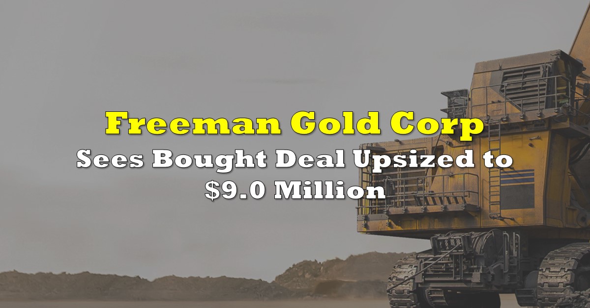 Freeman Gold Corp (CSE: FMAN) has upsized its bought deal financing announced this morning from $6.5 million to that of $9.0 million, a nearly 50% increase in the original placement amount. The increase was due to strong demand for the offering.