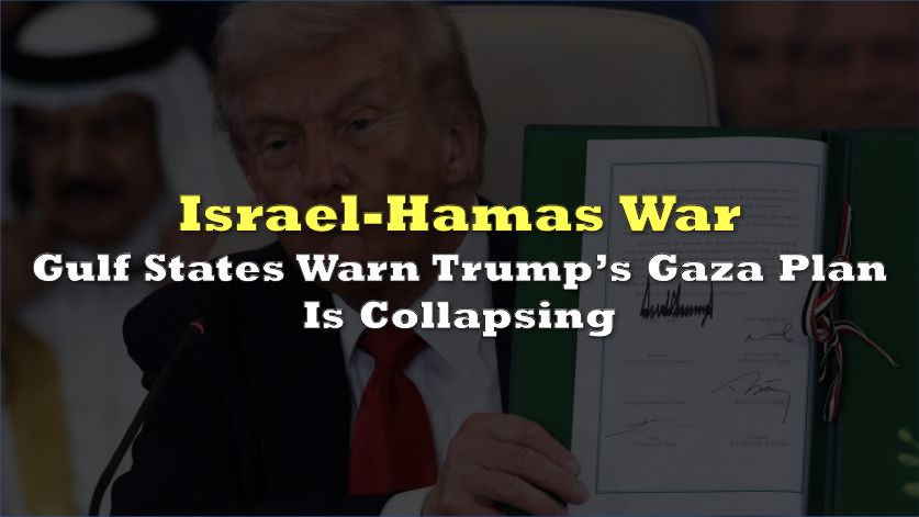 Saudi Arabia, the United Arab Emirates, and Bahrain warned the US that President Donald Trump’s post-war Gaza plan is in danger of collapse and that they will not finance reconstruction while Hamas retains weapons and territorial control.