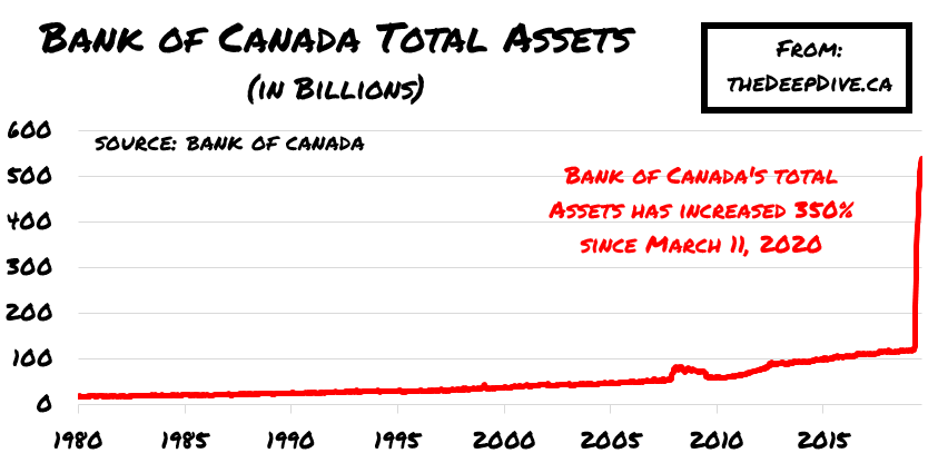 Now let’s talk deficits. Canada just forecast a three hundred forty five billion dollar deficit. The US is spending trillions on stimulus, and governments around the world are following suit. Most major governments are borrowing at near zero interest rates, and their currencies are protected from relative devaluation by the fact that every other developed nation is in the same boat. This massive global expansion of federal balance sheets is like rocket fuel for gold. As a currency, without the burden of massive stimulus demand facing national currencies, gold virtually must surge, as a simple function of supply and demand. The world is flooded with paper currencies, while gold supply is relatively unchanged. Gold appreciation is pretty well baked in as governments print new debt to meet the needs of the pandemic.