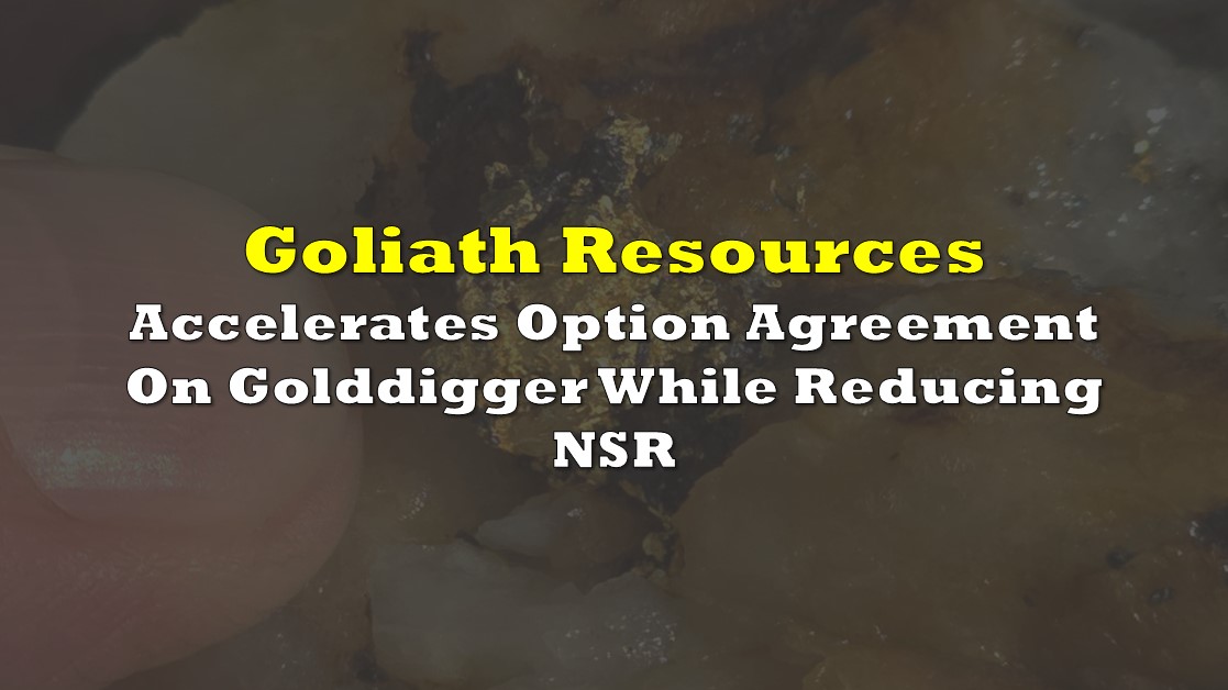 Goliath Resources (TSXV: GOT) has amended an existing property option agreement that is in place for its flagship Golddigger property. The amendments will see the fast tracking of Goliath’s ownership in the property, which hosts the high-grade Surebet gold discovery.