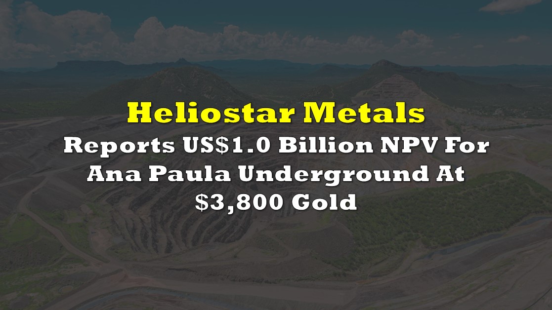 Heliostar Metals (TSXV: HSTR) has completed a preliminary economic assessment for the potential underground mine development of their Ana Paula Project in Mexico. The study has outlined a net present value of $426 million alongside an internal rate of return of 28.1% and a payback period of 2.9 years using a 5% discount rate and a gold price of $2,400 an ounce.