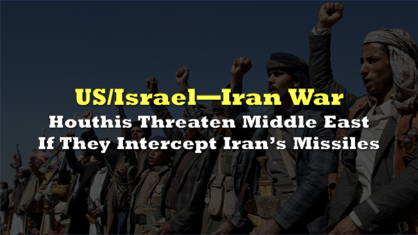 The Houthis sharply widened the regional risk calculus on Friday by warning that Jordan, Saudi Arabia, and the UAE would be treated as part of Israel if they intercept missiles launched by Iran, Yemen, or the wider “Resistance Axis.”