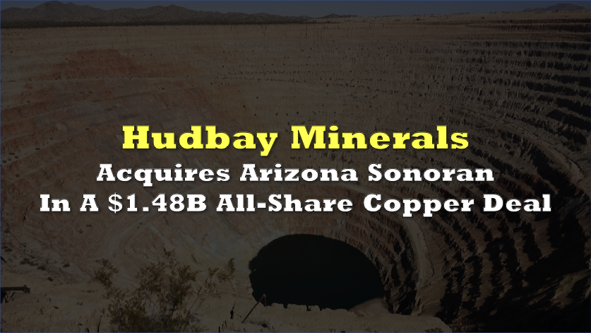 Hudbay Minerals is acquiring Arizona Sonoran Copper in an all-share transaction that values the latter at approximately $1.48 billion.