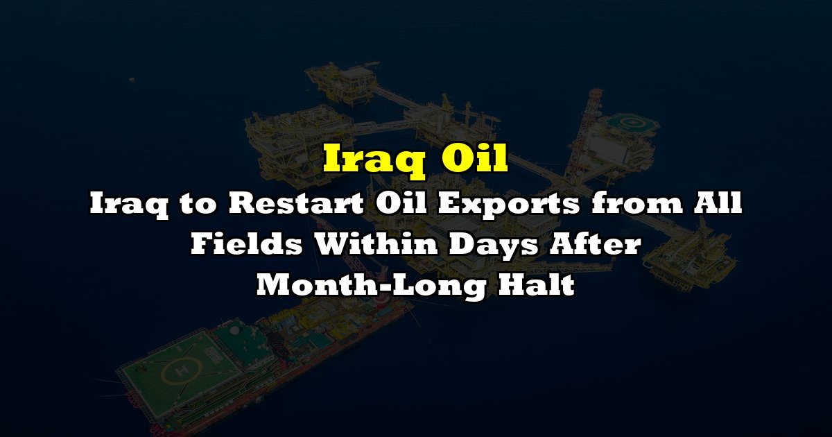 Iraq’s oil ministry announced that exports from all fields across the country will resume within the next few days, marking a significant step toward stabilizing its position as a key global crude supplier. The statement, reported on Saturday, follows more than a month of disruptions that have strained output and rattled energy markets.