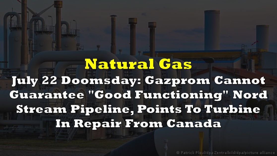 Fears of a total cutoff have found more substantiation as Gazprom said it cannot guarantee a “good functioning” of the Nord Stream pipeline as it is unsure if a “critical turbine engine” currently in repair will be returned in time from Canada.