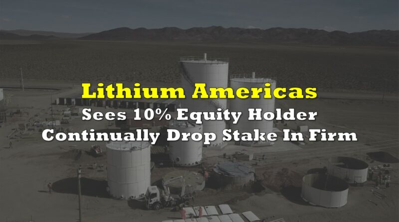 Lithium Americas (TSX: LAC) has seen continuous selling over the last month as one of its 10% securities holders apparently looks to liquidate their position in the company. Astoundingly, the company has managed to see its share price continue to rise despite the selling pressure that has been placed on it by the large securityholder.
