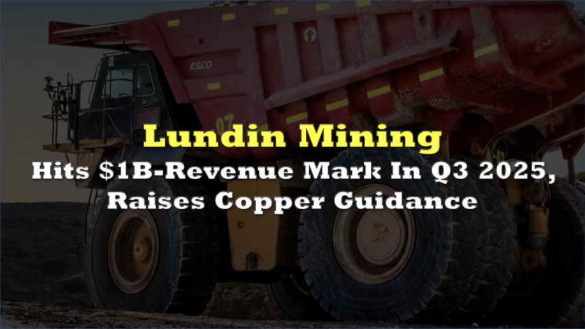 Lundin Mining (TSX: LUN) reported Q3 2025 revenue of $1.00 billion, up 15% year over year from $873.1 million. Management cited higher realized copper and gold prices and lower treatment charges, partly offset by lower sales volumes at Candelaria and higher depreciation.