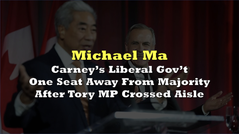 Mark Carney’s Liberal government moved within one seat of a majority after Markham–Unionville MP Michael Ma crossed the floor from the Conservatives to the government caucus.