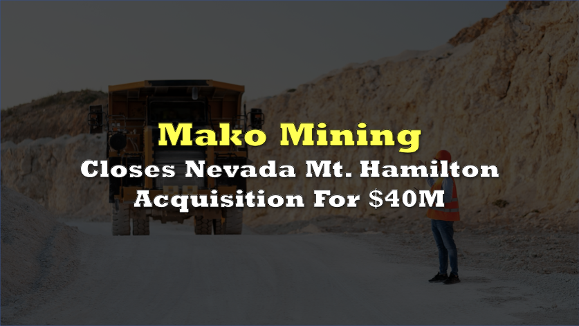 Mako Mining (TSXV: MKO) earlier this week completed its 100% acquisition of Mt. Hamilton, giving the company full ownership of the project in Nevada.