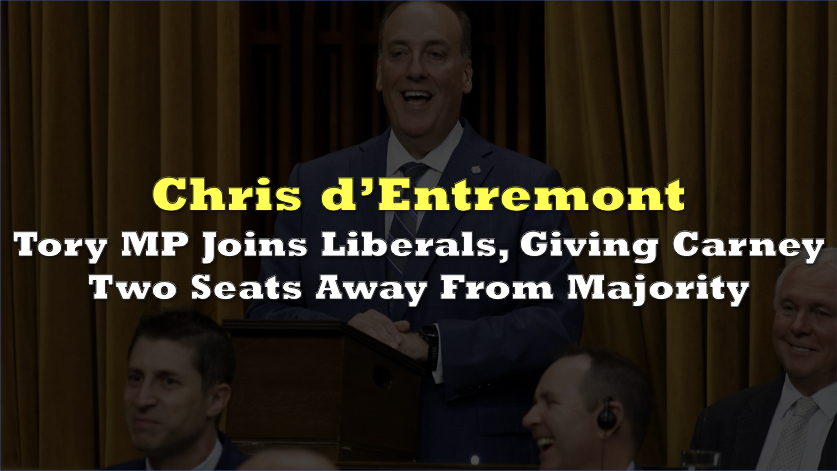 Nova Scotia MP Chris d’Entremont left the Conservative caucus on Tuesday and joined the Liberals, moving Prime Minister Mark Carney one seat closer to a majority that would secure his mandate until 2029.