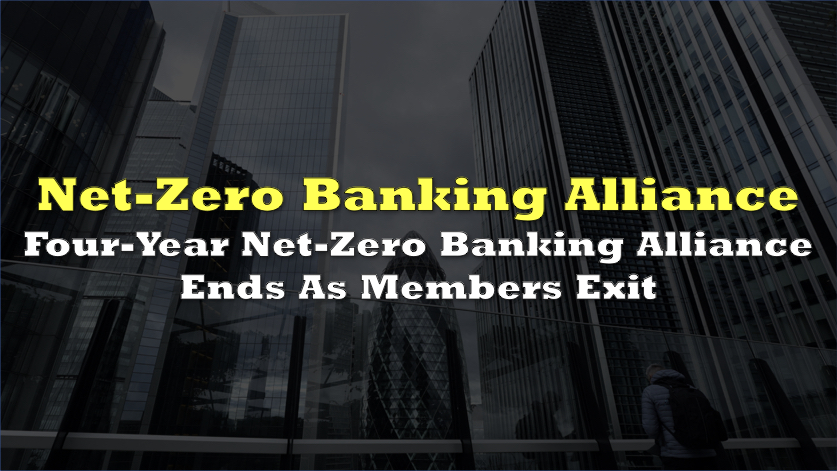 The Net-Zero Banking Alliance ceased operations Friday after losing most of its members, ending a four-year initiative launched in April 2021 that initially gathered 63 financial institutions from 32 countries with about US$40 trillion in assets.