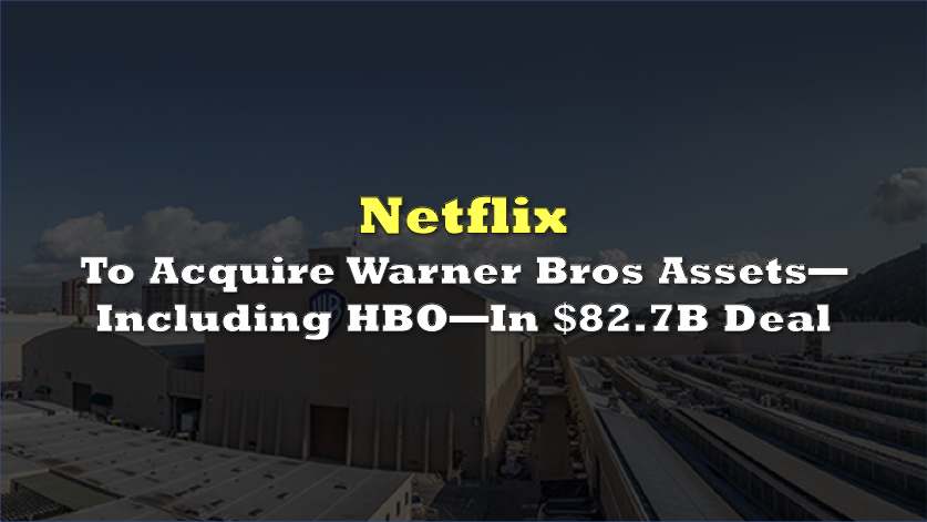 Netflix (NASDAQ: NFLX) agreed to acquire Warner Bros assets from Warner Bros. Discovery (NASDAQ: WBD) for a total enterprise value of about $82.7 billion and equity value of $72.0 billion, with closing expected after the latter completes the previously announced Discovery Global separation now targeted for Q3 2026.