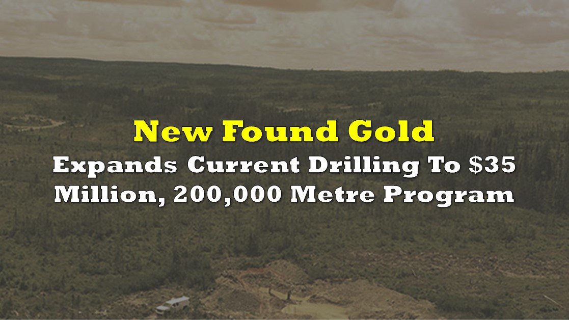 New Found Gold (TSXV: NFG) is starting off 2021 strong by announcing a doubling in size of its current drilling program at its flagship Queensway project, effectively growing the program from 100,000 metres to that of 200,000 metres. The company in the process is also increasing the number of drill rigs on site from four to eight drills.